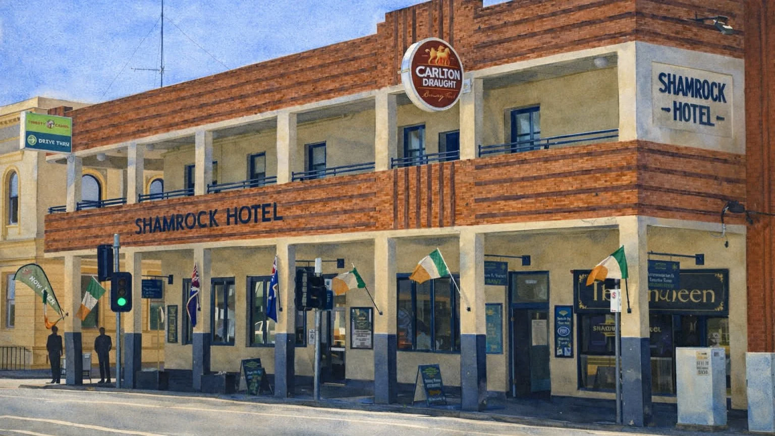 Originally established in 1903, rebuilt after a fire by Mr. Barry in 1904, and remodelled with stunning art deco features by Mr. Hardman in 1937, encompassing a sweeping balcony and an opulent pink brick faΓ§ade, its grandeur continues to shine today. Step inside The Shamrock's historic walls and experience the warmth and friendly hospitality that defines the township of historic Kyneton.